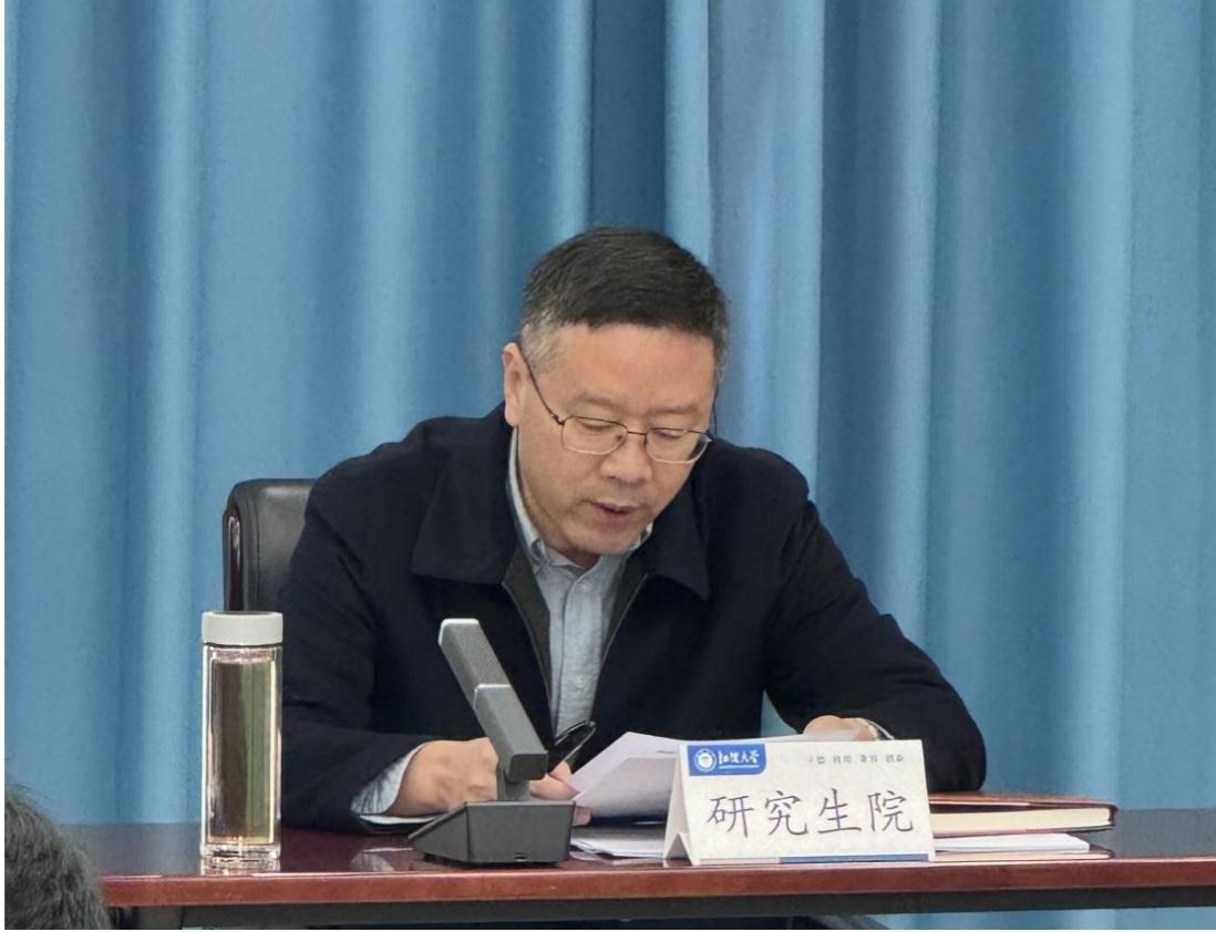 研究生院院长庄桂成首先汇报了本年度国家奖学金的申请评审情况。本年度评审工作严格依据《财政部教育部人社部关于调整高等教育阶段和高中阶段国家奖助学金政策通知》、《关于做好2025年研究生奖助学金评审发放工作的通知》等文件精神,在总结往年经验基础上进一步优化细则,确保程序规范透明。经个人申报、导师推荐、学院初评等环节,共产生校级候选人79名,其中博士研究生4名,硕士研究生75名。